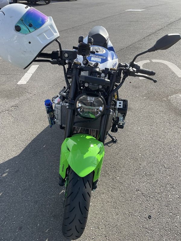| ★埼玉県T.O様のレポート 取り付け完了したので報告です。 以前に購入したハンドルも合わせて凄くイイ感じに仕上がりました! BugBro.comさんのZX-25Rのスタイルが好きで真似させて貰いました! これからも参考にさせて頂きます。 ★バグブロドットコムより返信 この度のお買い上げ、及び画像とレポートのご提供、誠にありがとうございます! おおっ! ZX-4RRのネイキッド化とは羨ましいです! では、また何かご縁が御座いましたら、その際は是非、バグブロドットコムを宜しくお願い致します! |