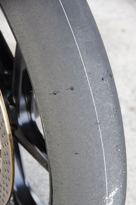 | ・路面温度が低くラバーグリップも皆無だった ・久々の走行とギャラリーが居ない事でテンションが高まらずキレモードに入らなかった ・52Tのリアスプロケットはちょっとショート過ぎて走りにくかった ・気温が低いせいか走行後の空気圧の落ち込みが大きかった ・スリックタイヤは路面温度が高くラバーグリップの有る日にも走らないとスパコルとの違いは分からない印象だった |