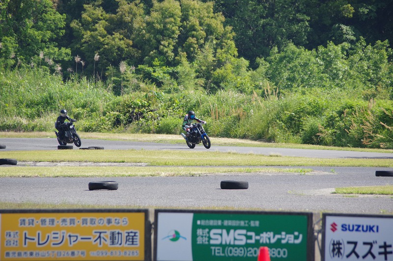 | ・リアショックのスプリング交換は吉と出た ・リアショックのスプリング交換でフロントの安心感も増した ・進入で頑張らず極端な立ち上がり重視でベストタイムも更新出来た ・最終手前の右コーナー立ち上がりでのワイドオープンがタイムアップのキモだと分かった ・3本目にリアスプロケットを50Tから52Tに変えても今後もイケるという感触だった ・初めて3本全ての走行でサブ40(40秒切り)出来た |