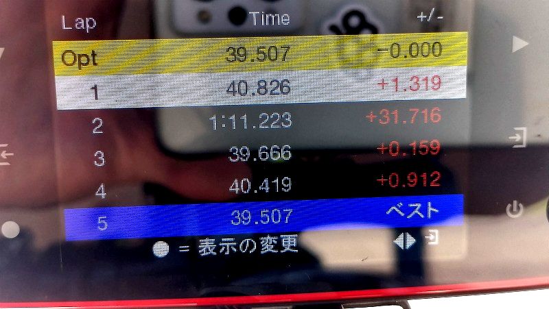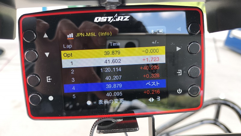・3本走って3本共に39秒台を出せた ・39秒台後半はコンスタントに出せる事が確認出来た ・3本目に1回だけ非常にスムースなスピニングが起きた ・アップハンのおかげでバイクを暴力的に扱う事が出来た |