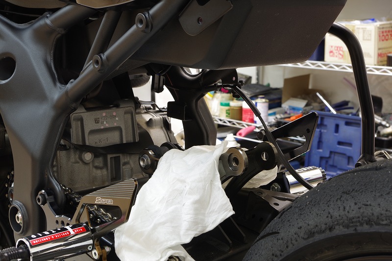 ステップスタンドを使ってリア周りをフリーにして、