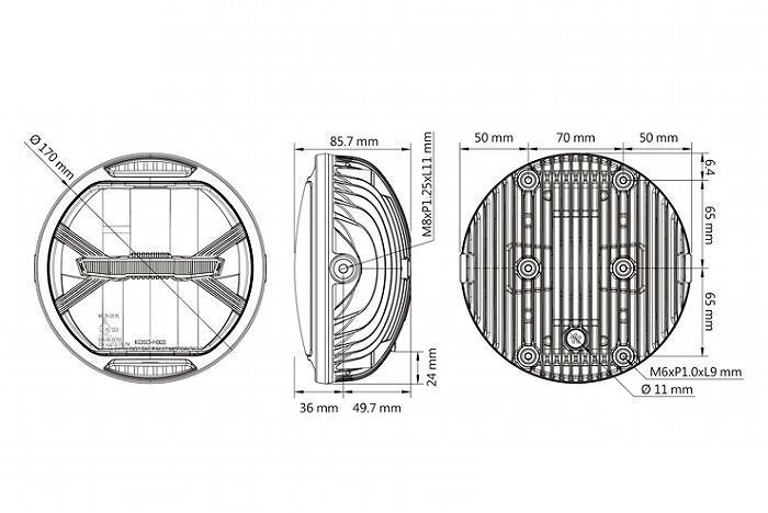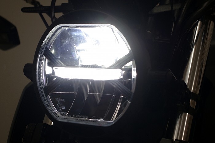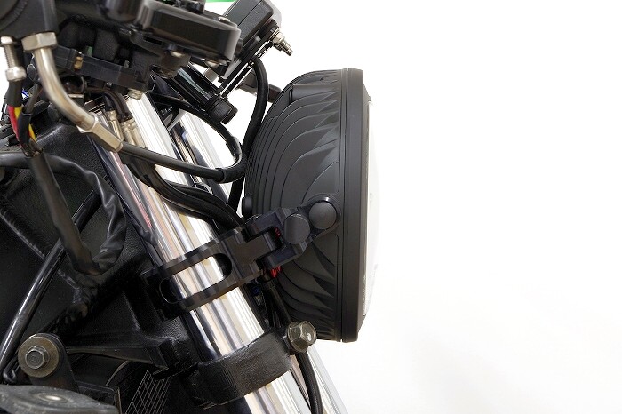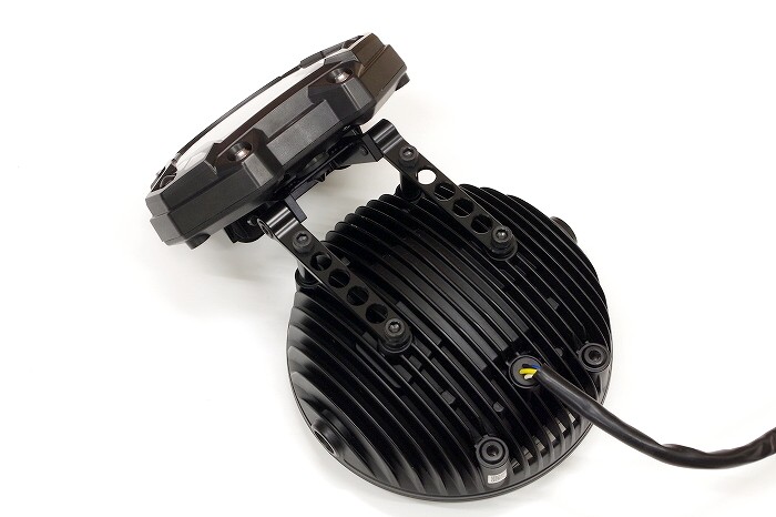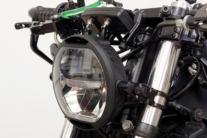 | Popular even among German custom builders, this next-generation LED headlight features a compact φ170mm diameter and an ultra-slim 85.7mm depth. It’s perfect for giving super nakeds (originally equipped with irregular-shaped headlights) a tough, old-school street fighter look, and it complies with Japanese vehicle inspection standards. |