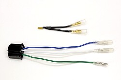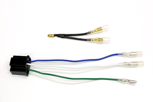 | The headlight uses an H4 connector. An H4-to-bullet-terminal conversion harness is included. Note: The black and white wires for the position lights require customer-side wiring modification. |