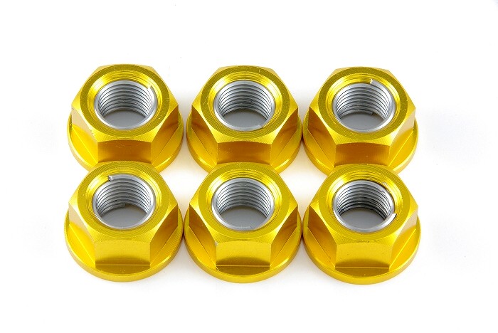 軽量アルミリアスプロケットナットキット12mm(金) ※セール品につき業務販売は行っておりませんので予め御了承してください※ (2013年2月22日販売開始:2020年5月5日販売終了) (2022年11月3日販売再開) ※これまでの販売数:7セット |