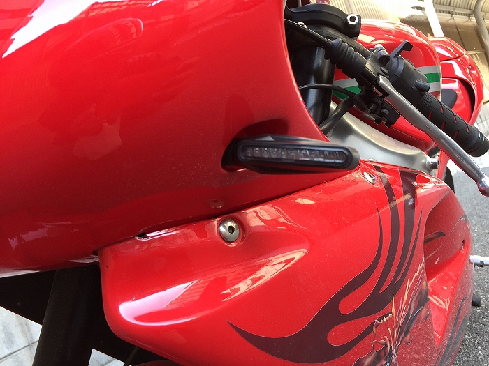| ★大阪府R.U様のレポート 今回LEDウインカー マットブラックの取付が完了しましたので御報告させていただきます。 【取付車両 】 aprilia RS250 95年式 【購入の経緯 】 年式が古い事もあり、純正のウインカーはどこにでもあるようなデザインのオレンジの丸いレンズで、ベース部分の色が退色して粉を吹いてる有様でした。 交換するにあたり考えたのが、光源のLED化、スタイリッシュなデザイン、コストパフォーマンスです。 そこで知人に教えてもらった、コチラのサイトを拝見しました。 サイズ感などを事前に問い合わせをしたところ、大きさの具合はもちろん、非常に丁寧にお答えいただきましたので購入を決めました。 【取付】 非常に簡単です。 他の社外品を取付できるなら問題ないと思います。 製品の仕様なのか車体の問題なのか分かりませんが、抵抗なしでハイフラしませんでした。 【見た目】 非常に満足です。 正直自分が考えていた以上にかっこよかったです(^^) コンパクトですが、光量も十分です。 【コストパフォーマンス】 単価でいうとめちゃくちゃ安い訳ではありませんが、品質を考えると十分な価格だと思います。 自分の不手際で、一度取り付けた直後に車体を転倒させて片側を破損させてしまいましたが、そういった際も片方だけの取り寄せができる点など、非常にメリットが多いと感じました。 以上、拙いインプレでしたが、ご購入を迷われている方には強くお勧めできる逸品です。 また他のパーツでもお世話になりたいと思います。 ★バグブロドットコムより返信 この度のお買い上げ、及び画像とレポートのご提供、誠にありがとうございます! では、今後とも是非、バグブロドットコムを宜しくお願い致します! |