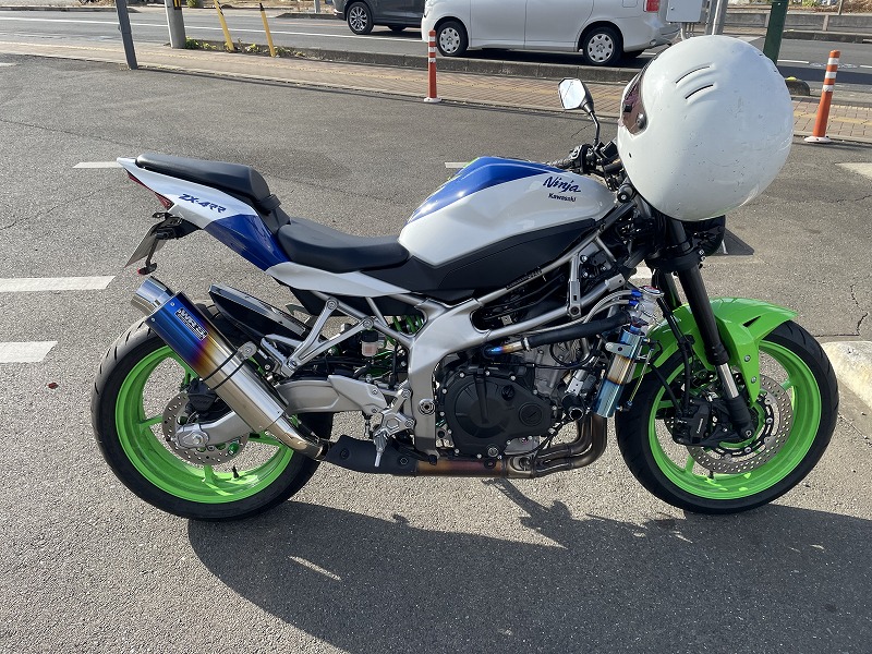| ★埼玉県T.O様のレポート 取り付け完了したので報告です。 以前に購入したハンドルも合わせて凄くイイ感じに仕上がりました! BugBro.comさんのZX-25Rのスタイルが好きで真似させて貰いました! これからも参考にさせて頂きます。 ★バグブロドットコムより返信 この度のお買い上げ、及び画像とレポートのご提供、誠にありがとうございます! おおっ! ZX-4RRのネイキッド化とは羨ましいです! では、また何かご縁が御座いましたら、その際は是非、バグブロドットコムを宜しくお願い致します! |