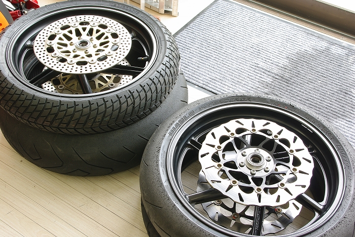 レインタイヤを履いたホイールも同様の組み合わせにする事で、