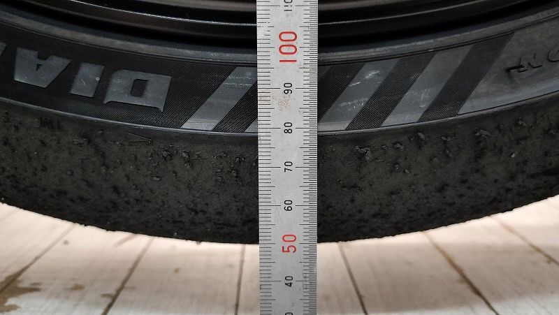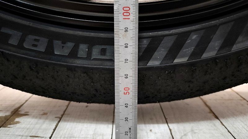 地面からタイヤのサイドウォールの角っこまでの高さを計りますと、