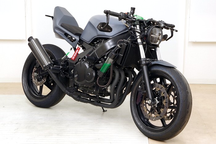 | Here's the Z400 fighter we built at BugBro.com, rocking the φ170 LED Headlight—standing behind it is yours truly, BugBro.com's Yamaguchi. I designed this one myself and I'm the guy selling it. |