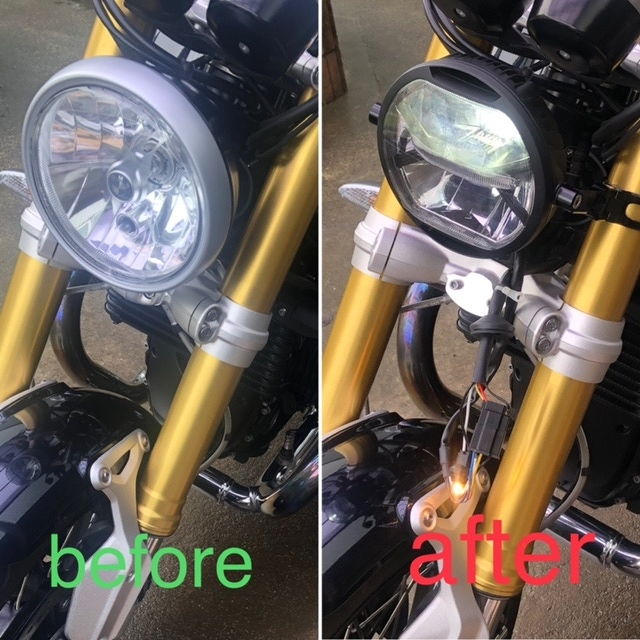 | This is the before-and-after comparison on the R nineT. |